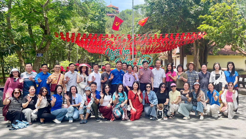 Đoàn chụp ảnh lưu niệm tại Đài tưởng niệm Khu di tích lịch sử cấp quốc gia đặc biệt Ngã ba Đồng Lộc