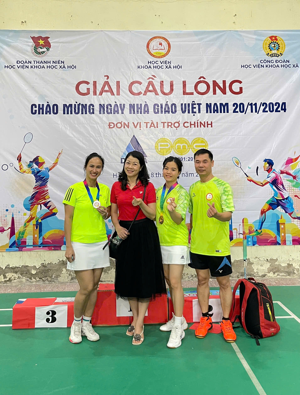Giám đốc Học viện KHXH chụp ảnh cùng vận động viên thi đấu.