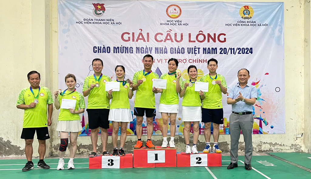 Giám đốc Học viện KHXH trao giải Nhất – Nhì – Ba cho Đôi Nam nữ Học viện KHXH mở rộng.