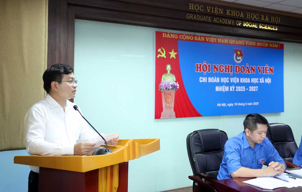 Phát biểu tại Hội nghị, TS. Nguyễn Tuấn Anh - Bí thư Đoàn TNCS Hồ Chí Minh Viện Hàn lâm KHXH Việt Nam đánh giá cao tinh thần chuẩn bị nghiêm túc, toàn diện của BCH Chi đoàn đối với báo cáo tổng kết giai đoạn vừa qua. Bên cạnh đó, đồng chí Nguyễn Tuấn Anh cũng ghi nhận những kết quả mà Chi đoàn Học viện đã đạt được trong giai đoạn 2024-2025, thành tích hoạt động của Chi đoàn Học viện không chỉ lan tỏa trong đơn vị mà luôn được Đoàn Viện Hàn lâm tin tưởng, các chi đoàn bạn đánh giá cao. Đồng thời, khẳng định sẽ tạo mọi điều kiện thuận lợi cho Chi đoàn hoạt động và phát triển.
