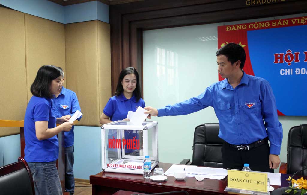 Đoàn viên bỏ phiếu bầu đoàn đại biểu dự Đại hội Đại biểu Đoàn Viện Hàn lâm Khoa học xã hội Việt Nam lần thứ XXI