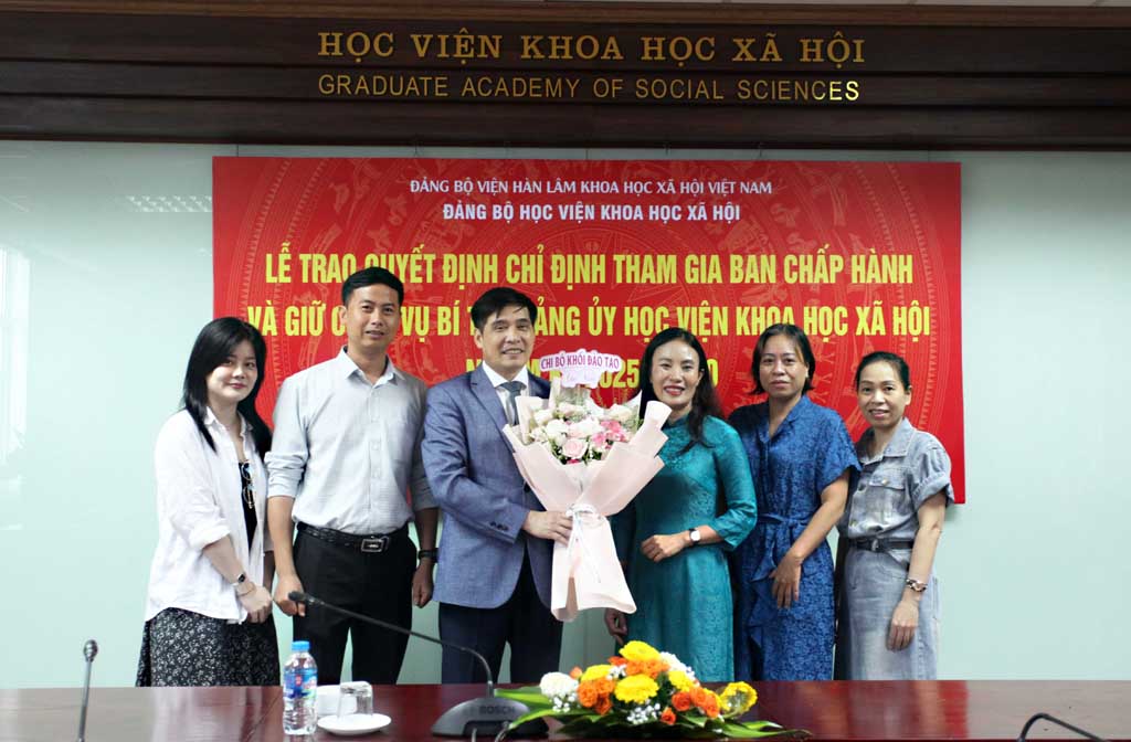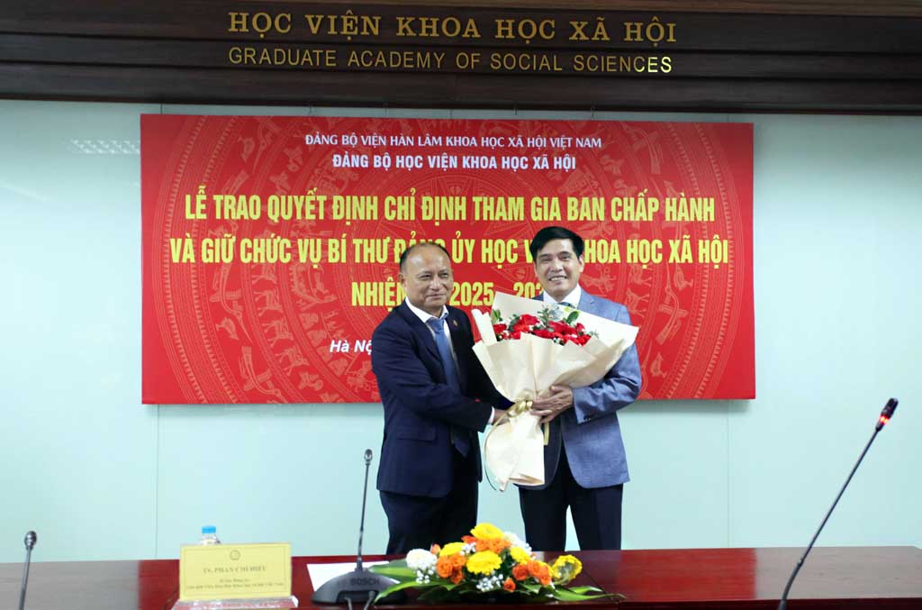 Tại buổi lễ, thừa ủy quyền của Lãnh đạo Đảng ủy Viện Hàn lâm, đồng chí Đỗ Xuân Lân Chánh Văn phòng Đảng ủy công bố Quyết định của Đảng ủy Viện Hàn lâm Khoa học xã hội Việt Nam chỉ định Đồng chí Nguyễn Hoàng Hiển, Chủ tịch Hội đồng Học viện tham gia Ban Chấp hành, giữ chức Bí thư Đảng ủy Học viện Khoa học xã hội nhiệm kỳ 2025 - 2030.