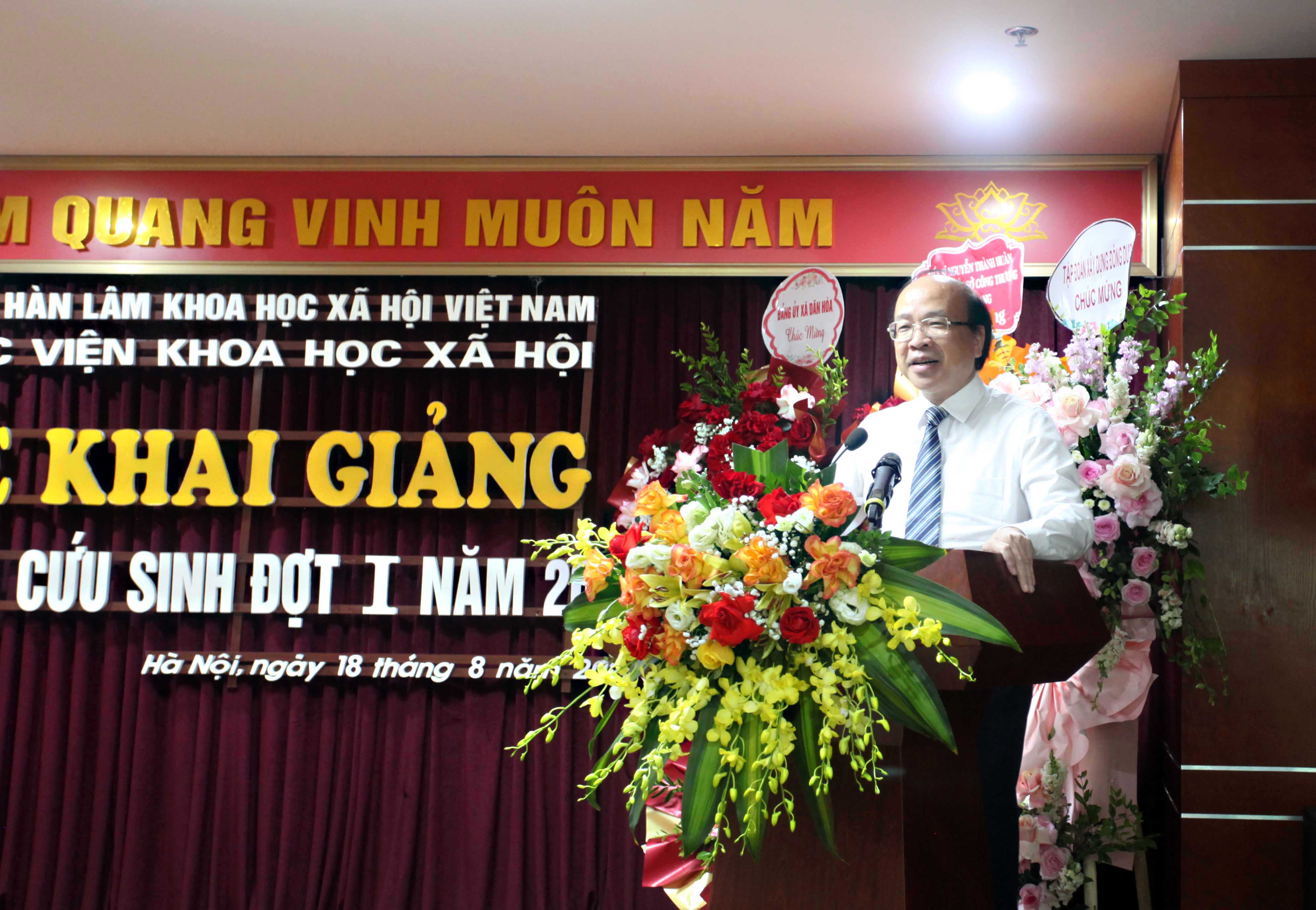 Trong bài diễn văn khai giảng lớp nghiên cứu sinh đợt I năm 2025, thay mặt Ban Giám đốc Học viện, PGS.TS. Nguyễn Huy Hoàng - Giám đốc Học viện Khoa học xã hội gửi lời cảm ơn chân thành, sâu sắc đến sự quan tâm, ủng hộ mạnh mẽ của lãnh đạo Viện Hàn lâm Khoa học xã hội Việt Nam, của Bộ Giáo dục và Đào tạo, cũng như sự cộng tác nhiệt tình của các thầy giáo, cô giáo vì sự nghiệp đào tạo đội ngũ nhân lực chất lượng cao cho đất nước và chúc mừng các ứng viên đã trúng tuyển, trở thành tân nghiên cứu sinh, đợt I năm 2025 của Học viện Khoa học xã hội.