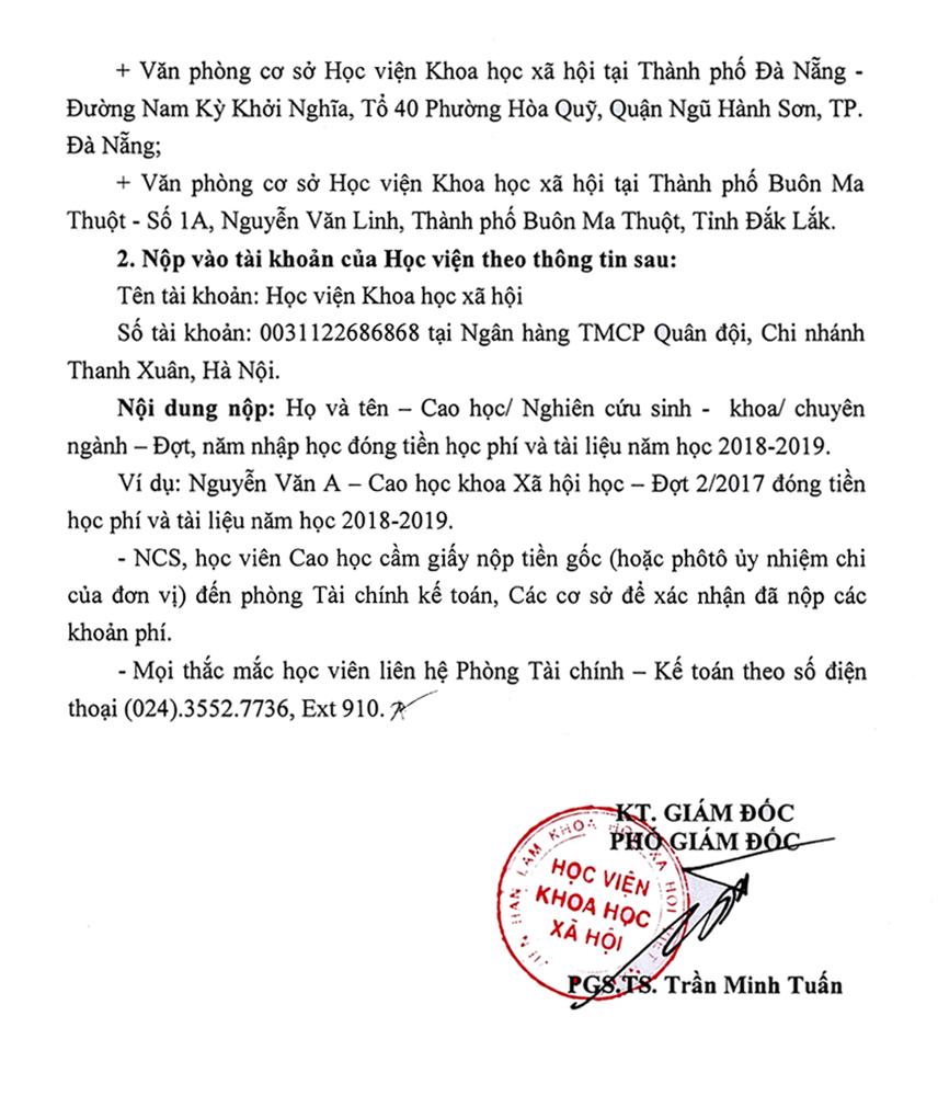 Thông báo thời gian nhập học, khai giảng và học các học phần chung của nghiên cứu sinh trúng tuyển đợt 2 năm 2018