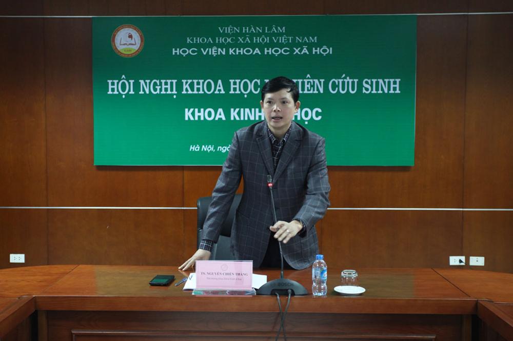 Tại Hội nghị, TS. Nguyễn Chiến Thắng đã phát biểu đề dẫn, trình bày mục tiêu và nội dung của Hội nghị khoa học NCS của Khoa Kinh tế học. Hội nghị lần này nhằm mục đích để các NCS đợt 1 và 2 năm 2015 trình bày các báo cáo kết quả học tập, hoạt động nghiên cứu khoa học trong quá trình nghiên cứu và hoàn thành luận án; là cơ hội cho NCS tranh thủ tham khảo ý kiến của các chuyên gia, thầy cô giáo để hoàn thiện quá trình nghiên cứu Luận án kịp tiến độ và chất lượng. Đây là một hoạt động trong chuỗi những hoạt động nhằm nâng cao chất lượng đào tạo của Khoa Kinh tế học, Học viện Khoa học xã hội.