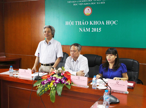 Phát biểu tại Hội thảo, GS.TS. Võ Khánh Vinh ghi nhận và biểu dương sự chủ động của Khoa Dân tộc học, Phòng Quản lý khoa học và các phòng/ban liên quan trong công tác chuẩn bị và tiến hành Hội thảo, Hội thảo này đã mở ra một diễn đàn khoa học bổ ích cho các nhà khoa học trong công tác nghiên cứu và giảng dạy, đặc biệt là cơ hội tốt để các học viên tiếp cận và tìm hiểu sâu về vấn đề nghiên cứu. Với chủ đề chính của Hội thảo “Một số hiện tượng tôn giáo mới ở vùng dân tộc thiểu số miền núi nước ta hiện nay” Giáo sư cho rằng Báo cáo này đã gợi mở cho các học viên nhiều hướng tiếp cận nghiên cứu mới, đặc biệt là nghiên cứu liên ngành, đa ngành khoa học xã hội, đây cũng chính là định hướng trọng tâm của công tác đào tạo tại Học viện Khoa học xã hội trong giai đoạn hiện tại và những năm tiếp theo. Trên cương vị Lãnh đạo các hoạt động đào tạo tại đơn vị, Giáo sư nhấn mạnh đối với thầy và trò Khoa Dân tộc học về một số định hướng trong công tác nghiên cứu vấn đề tôn giáo ở nước ta: